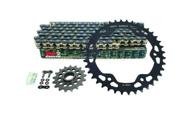 The Superlite RSX rear sprocket unique spoke design gives these sprockets superior strength with maximum weight savings. The RSX steel sprocket weighs slightly more than an aluminum sprocket but will last 2-3 times longer! All Superlite brand 520 front sprockets are made of tough chromoly-steel and are cross drilled for weight reduction. Sprocket Center chain kits feature motorcycle chains from DID, RK and EK, the best brands in the industry!