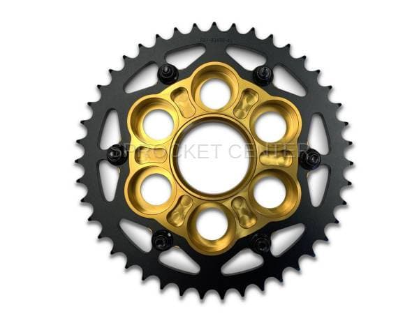 The best replacement for your Ducati V4 rear sprocket. This two-piece system takes the place of your one-piece OEM rear sprocket. You no longer have to remove the entire wheel assembly, just to change the rear sprocket. All components are precision machined and install just like the Ducati factory parts. For use with SUPERLITE brand Quick Change sprockets only. Available in Steel or Aluminum and are offered in a wide range of sizes. (sprocket part # 50804, #51804, #50803 and #51803) This system can be used with the OEM or aftermarket flange hub covers and use the OEM or Superlite Poly Cush Drives.