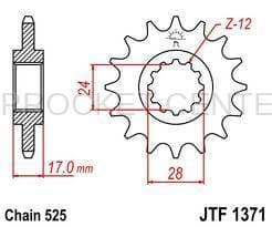 JT Sprockets #JTF 1371 available in sizes 14 and 15. (See DETAILS tab for HONDA models this part fits). JT brand front sprockets are made from SCM415/420 chromoly-steel alloy to ensure maximum durability and great performance. Some models designed with special rubber ring for quiet performance