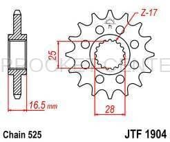 JTF1904RB - JT brand Front Sprocket with OEM style rubber Dampener - KTM\\r\\n\\r\\nTooth size - 16 , 17\\r\\nChain Pitch - 525\\r\\n\\r\\nSee DETAILS tab for KTM models this part fits.\\r\\n\\r\\nJT Sprockets brand front sprockets are manufactured using only SCM420 chromoly steel alloy. The JT Steel Sprockets range now contains over 2,500 parts for all motorcycles and ATVs. JT brand rubber cushioned front sprockets offer the same quality, design, and OEM proven technology as used by major Japanese motorcycle manufacturers since the early 90s to dampen chain impact.\\r\\n\\r\\nGOT QUESTIONS?? Our knowledgeable staff is waiting to help you build the perfect chain & sprocket kit for your KTM motorcycle. For the fastest service, please give us a call at 888-265-2141.\"}, \"type\": \"paragraph\"}], \"version\": \"2.30.7\"}","image":["https://api-sprocket-center.wsm-dev.com/thumbnail/UHJvZHVjdE1lZGlhOjk1NzI=/4096/","https://api-sprocket-center.wsm-dev.com/thumbnail/UHJvZHVjdE1lZGlhOjk1NzE=/4096/"],"sku":"JTF1904RB","offers":{"@type":"Offer","price":"24","priceCurrency":"USD","availability":"https://schema.org/InStock","url":"https://store-sprocket-center.wsm-dev.com/product/undefined"},"brand":{"@type":"Brand","name":"KTM"}}