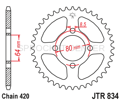 JTR834 Steel Rear sprocket. Fits Yamaha TTR50 /TTR90 / TTR110 - Chain Pitch - 420