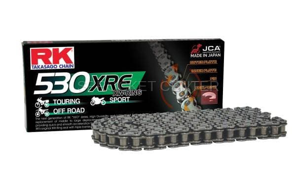 The new RK 530XRE chain is a lightweight, high performance chain for any 600-1400cc motorcycles. RK XRE chains include XW-sealing rings which provide two lubrication pools which help protect against high speed abrasion and prevent dirt and debris from penetrating the inner rollers/bushings of the chain. This chain is a perfect balance between high tensile strength, lightweight design and while maximum life.